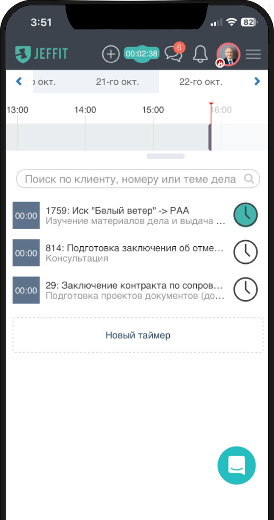 Программы учета времени, благодаря своему интерфейсу, доступности в мобильных устройствах и тесной связи с учетом дел, способствуют тому, чтобы юристы записывали время в ходе выполнения своей работы, а не задним числом в конце недели. Это, во-первых, сокращает усилия на сам учет и высвобождает время для продуктивной работы. Во-вторых, снижает вероятность того, что о какой-то выполненной работе забудут и она не будет выставлена клиенту. Также, например, Jeffit может автоматически напоминать юристам о прошедших судебных заседаниях с их участием, если по этим заседаниям не внесено записей о времени.